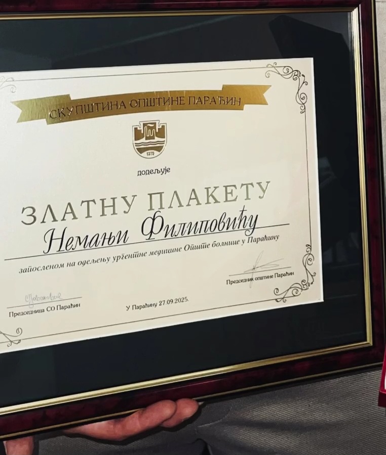 Његова херојска акција сада је и званично призната. На Дан општине Параћин, Немања је од локалне самоуправе добио Златну плакету као знак захвалности за храброст и пожртвованост.